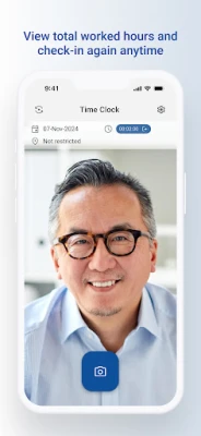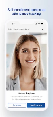 • Biometric recognition – an individual can manually register their time using face recognition by capturing an image of themselves