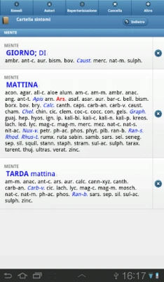 • Lista dei Rimedi con tutte le abbreviazioni e i nomi completi.